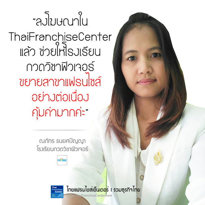 ถ้าคุณอยากทำการตลาด หรือขายธุรกิจแฟรนไชส์ เพื่อให้ตรงกลุ่มผู้ที่ต้องการซื้อแฟรนไชส์จริงๆ ขอแนะนำเว็บไซต์ที่เชื่อถือได้อย่าง www.ThaiFranchiseCenter.com ศูนย์รวมธุรกิจแฟรนไชส์ที่ใหญ่ที่สุดในไทย