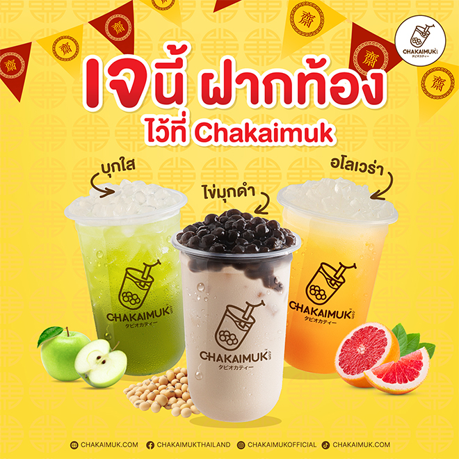 งานนี้ชาไข่มุกดอทคอมก็ไม่พลาดจัดสินค้าธีมเทศกาลกินเจให้คนรักสุขภาพได้เลือกซื้อเครื่องดื่มอร่อยได้ ไฮไลท์คือมัดรวม ท็อปปิ้ง เจ อร่อย กินง่าย เคี้ยวสนุกมาให้เลือกทั้ง บุกใส , ไข่มุกดำ และวุ้นอโลเวร่า จุดเด่นของชาไข่มุกดอทคอมคือโลโก้ที่มีความเป็นเอกลักษณ์เข้าถึงได้ทุกวัย และด้วยราคาเริ่มต้นเพียง 19 บาท แต่ใช้ชา ที่ดีมีคุณภาพ