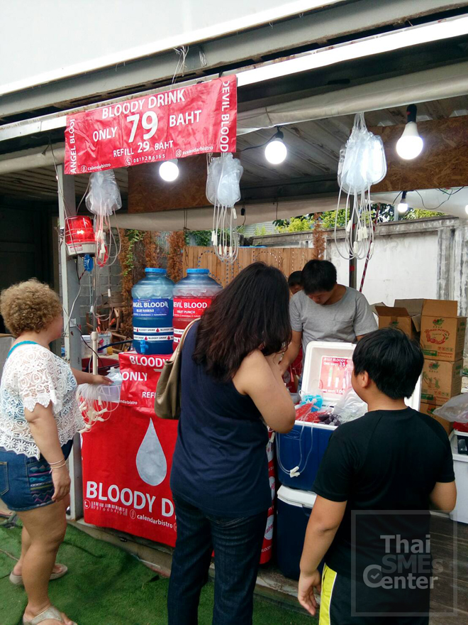 “ร้านถุงเลือด” เป็นร้านที่คนเข้าไปเดินในงาน ARTBOX ทุกคนต้องให้ความสนใจ และอยากจะลิ้มลองในรสชาติ ด้วยความแปลกของบรรจุภัณฑ์ที่ใส่เครื่องดื่ม มองดูแล้วไม่น่าดื่มเลยครับ แต่น้องๆ แต่ละคนที่ดื่มแล้วบอกว่ารสชาติอร่อย คนแห่เซลฟี่กันยกใหญ่กันเลยทีเดียว ถือเป็นร้านที่มีไอเดียเก๋ๆ จริงๆ ครับ เหมาะสำหรับงาน ARTBOX ที่มีสไตล์เฉพาะตัว