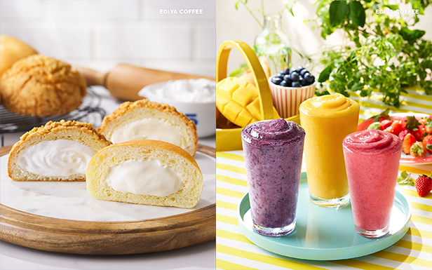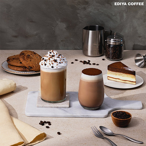 EDIYA มีเครื่องดื่มหลากหลายเมนู รวมกาแฟเอสเปรสโซ่ ชา นมปั่น น้ำผลไม้ เครื่องดื่มอัดลม และเมนูอื่นๆ ครอบคลุมทุกความชอบของลูกค้า นอกจากนี้ยังมีเบเกอรี่และของว่าง พิซซ่าอบใหม่