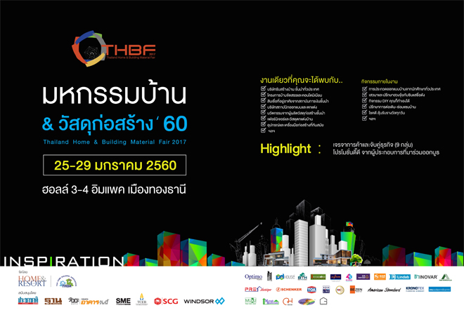 โดยเฉพาะในต่างจังหวัด หากลงทะเบียนที่บูธของธนาคารและบูธผู้ประกอบการรับสร้างบ้าน จะได้รับโปรโมชั่นดอกเบี้ยต่ำและสิทธิพิเศษเฉพาะในงานนี้เท่านั้น สำหรับ งานมหกรรมบ้านและวัสดุก่อสร้าง’ 60 จะจัดขึ้นระหว่าง วันที่ 25-29 มกราคมนี้ รวม 5 วัน ณ ฮอลล์ 3-4 อิมแพคเมืองทองธานี