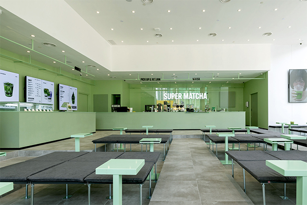SUPER MATCHA วางตัวเป็น Modern Premium Matcha Café เน้นความเรียบง่าย ถ่ายทอดผ่านภาพลักษณ์แบรนด์ที่มีความมินิมอล สีเขียวพาสเทล และบรรจุภัณฑ์ที่ได้รับรางวัล iF Design Award 2025 ในสาขา Communication Design