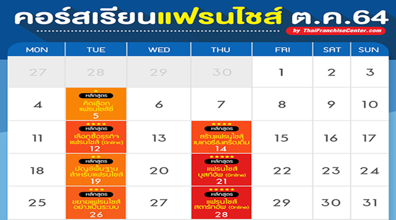 มาแล้ว! 7 คอร์สเรียนแฟรนไชส์ออนไลน์ในเดือนตุลาคม 2564
