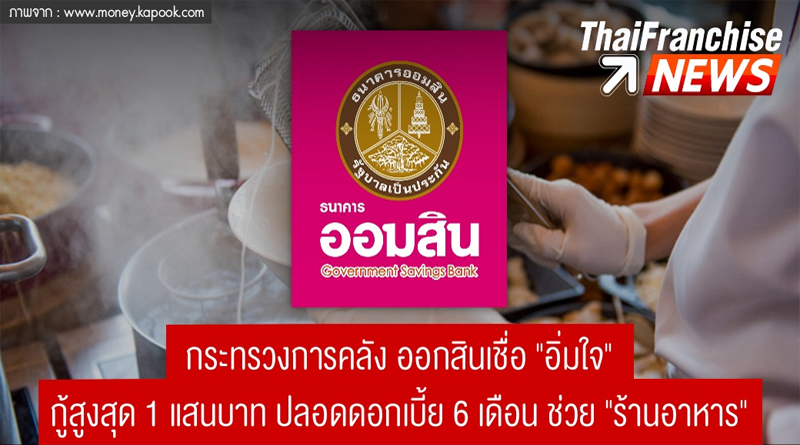 ครม.มีมติเห็นชอบสินเชื่อ ” อิ่มใจ ” ช่วยร้านอาหารและเครื่องดื่ม วงเงิน 2,000 ล้านบาท ให้ “ธนาคารออมสิน” ปล่อยกู้ 100,000 บาท / ราย ดอกเบี้ย 3.99% ต่อปี (Effective Rate) ระยะเวลากู้ไม่เกิน 5 ปี ปลอดชำระเงินต้นและดอกเบี้ย 6 งวดแรก รับคำขอสินเชื่อถึงวันที่ 31 ธ.ค.2564