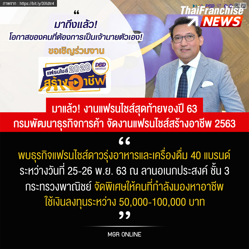 TF News | มาแล้ว! งานแฟรนไชส์สุดท้ายของปี 63 กรมพัฒนาธุรกิจการค้า จัดงานแฟรนไชส์สร้างอาชีพ 2563