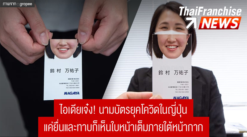 ยุคโควิด-19 การสวมหน้ากากอนามัย ทำให้เห็นใบหน้าเพียงครึ่ง บริษัท Nagaya Printing ญี่ปุ่น ปิ๊งไอเดียทำนามบัตร “Smile Meishi” ปริ้นรูปใบหน้าครึ่งล่าง เมื่อทาบกับใบหน้าจริง จะเห็นหน้าเต็มชัดเจน ถือเป็นไอเดียที่น่าสนใจในยุคนี้