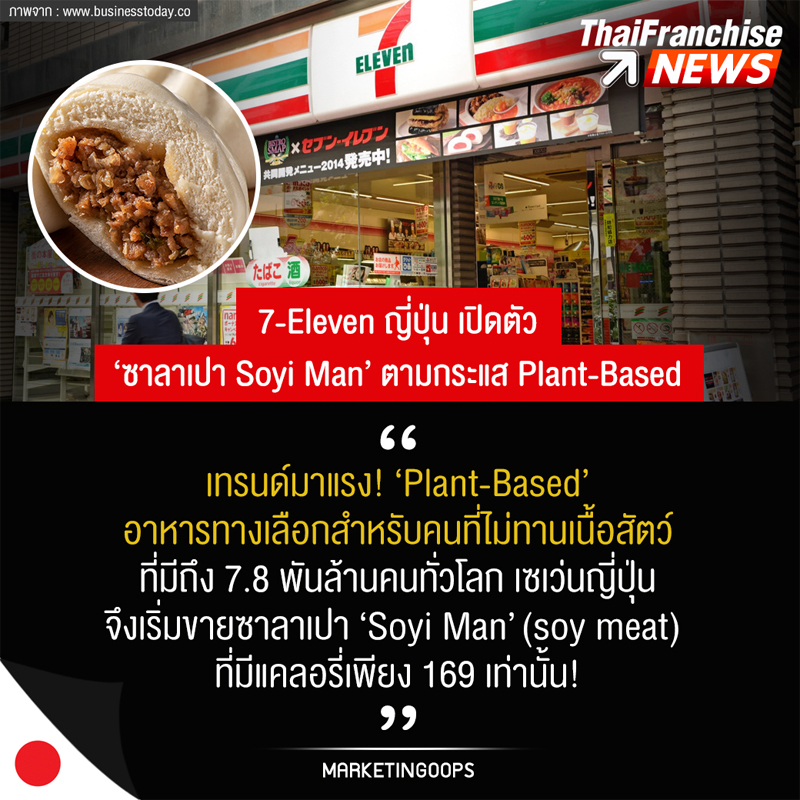 เป็นเทรนด์ที่ห้ามมองข้าม ‘Plant-Based’ อาหารทางเลือกสำหรับสายวีแกนหรือกลุ่มคนที่ไม่ทานเนื้อสัตว์ ที่มีถึง 7.8 พันล้านคนทั่วโลก เซเว่นญี่ปุ่นจึงเริ่มขายซาลาเปา ‘Soyi Man’ (soy meat) ที่มีแคลอรี่เพียง 169 เท่านั้น!